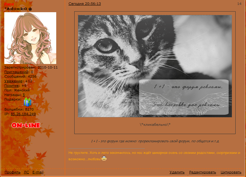 Что ж, на этом все, и не забудьте, пожалуйста, прочитать Правила форума здесь или здесь.